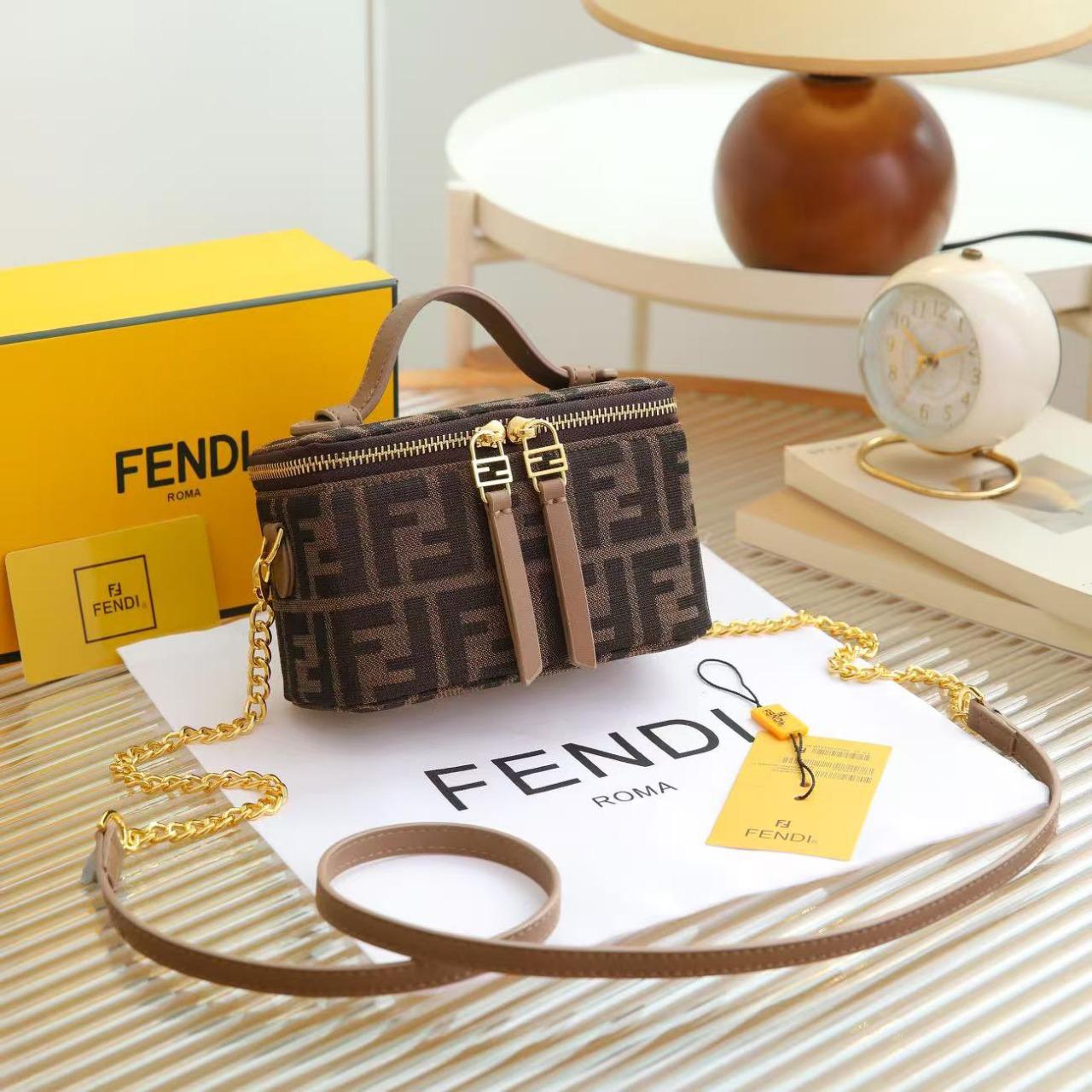A vibrant collection of structured Fendi-style shoulder bags featuring a classic rectangular silhouette and a patent or high-gloss finish. Each is defined by the iconic gold-toned FF logo clasp (zucca or double F).