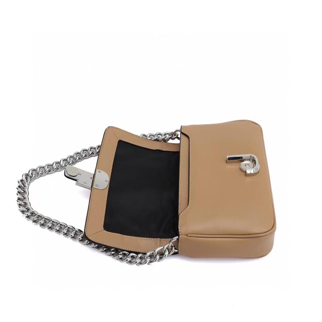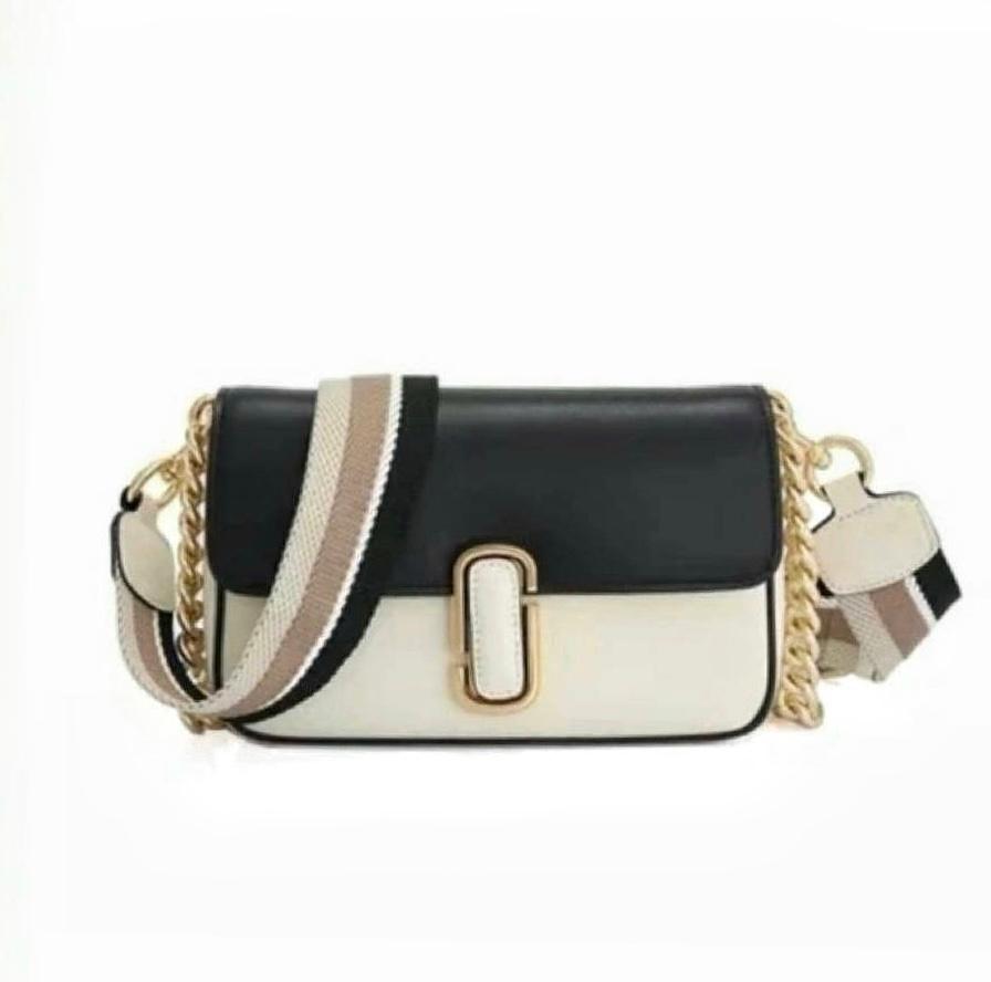 Versatility: Designed to be worn three ways—as a shoulder bag with the chunky chain strap, a crossbody with the wide logo-branded webbing strap, or as a clutch by removing both straps.